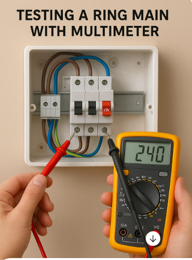 Using a multimeter to test a ring main can reveal continuity faults, breaks, or incorrect connections. While it doesn’t replace full professional testing with insulation resistance and earth loop impedance tools, it’s a safe and effective method for basic verification, especially after DIY modifications or fault finding. Always prioritise safety, label circuits, and consult a qualified electrician if in doubt.